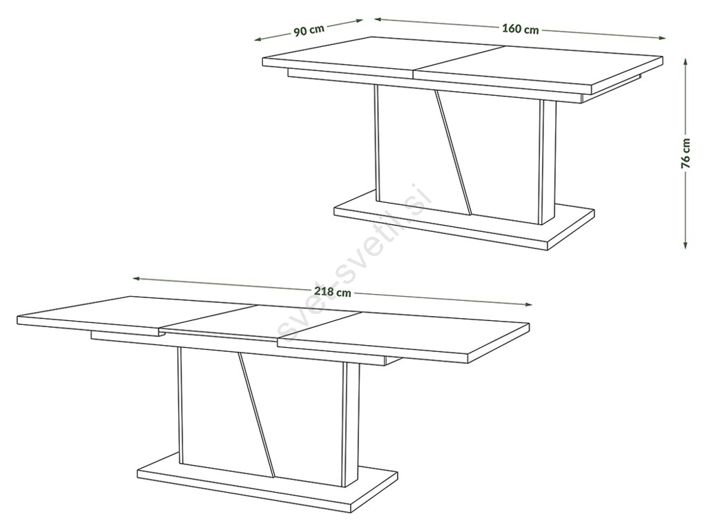 • Z eno 58cm vstavko lahko površino mize razširite do 218 cm (za nemoteno premikanje skrbijo kakovostna sinhrona vodila).