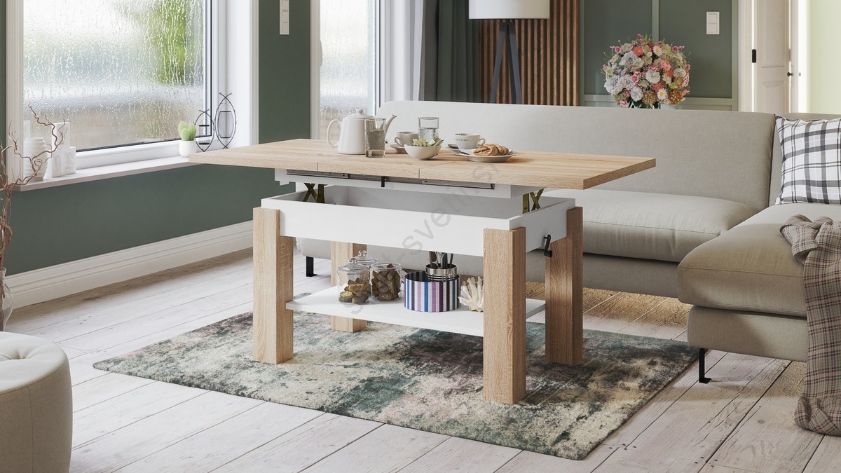 • Raztegljiva konferenčna/jedilna miza z odlagalno polico ADONIS hrast sonoma/bela