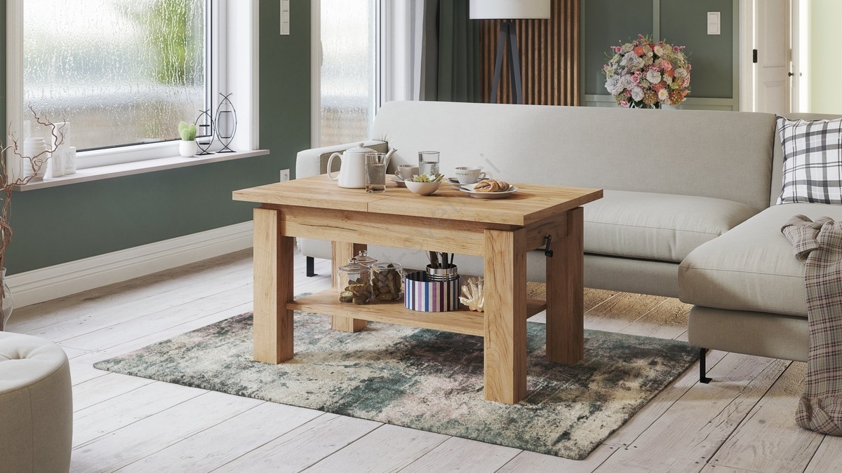 • Raztegljiva klubska mizica z polico ADONIS 110/150x68 cm hrast craft