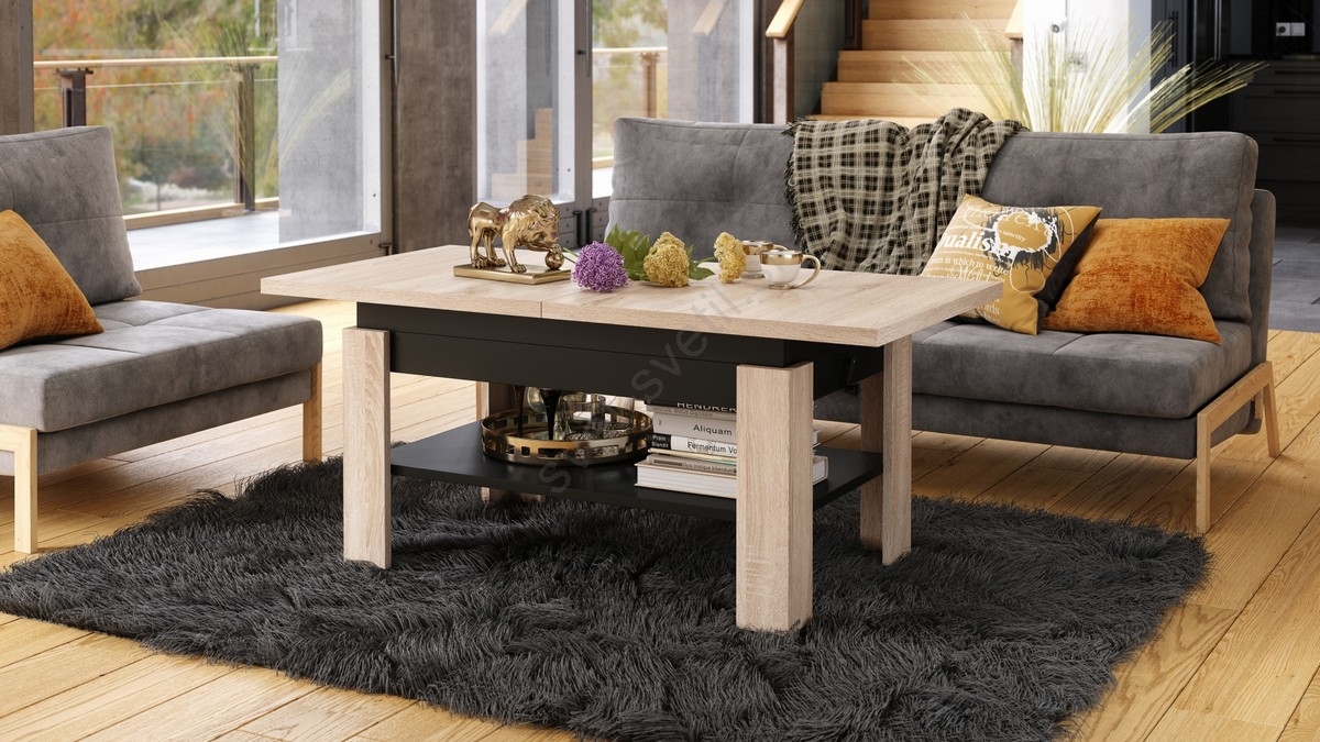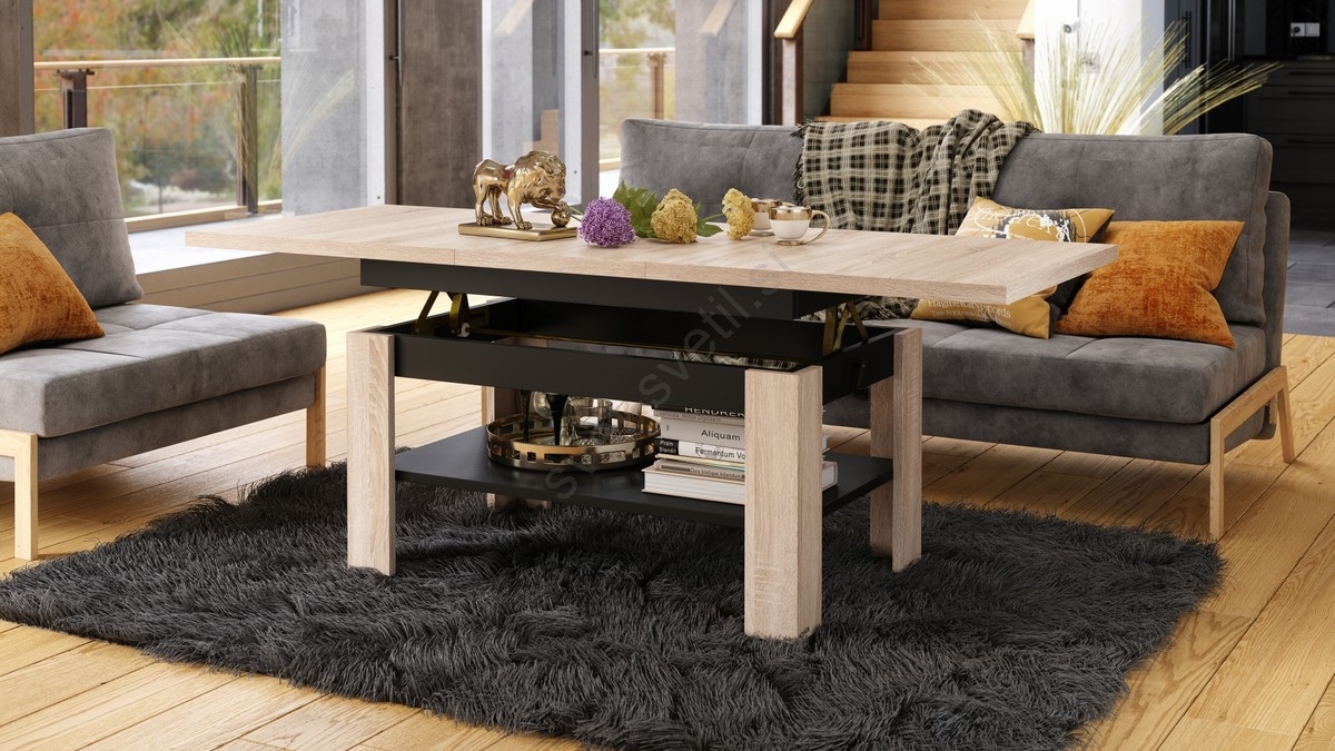 • Raztegljiva klubska/jedilna miza z dvižno ploščo ROY hrast craft/črna
