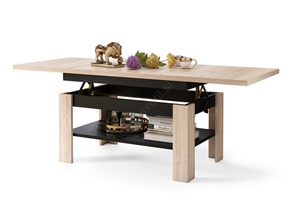 • Raztegljiva konferenčna/jedilna miza z dvignljivim zgornjim delom ROY hrast sonoma/črna
