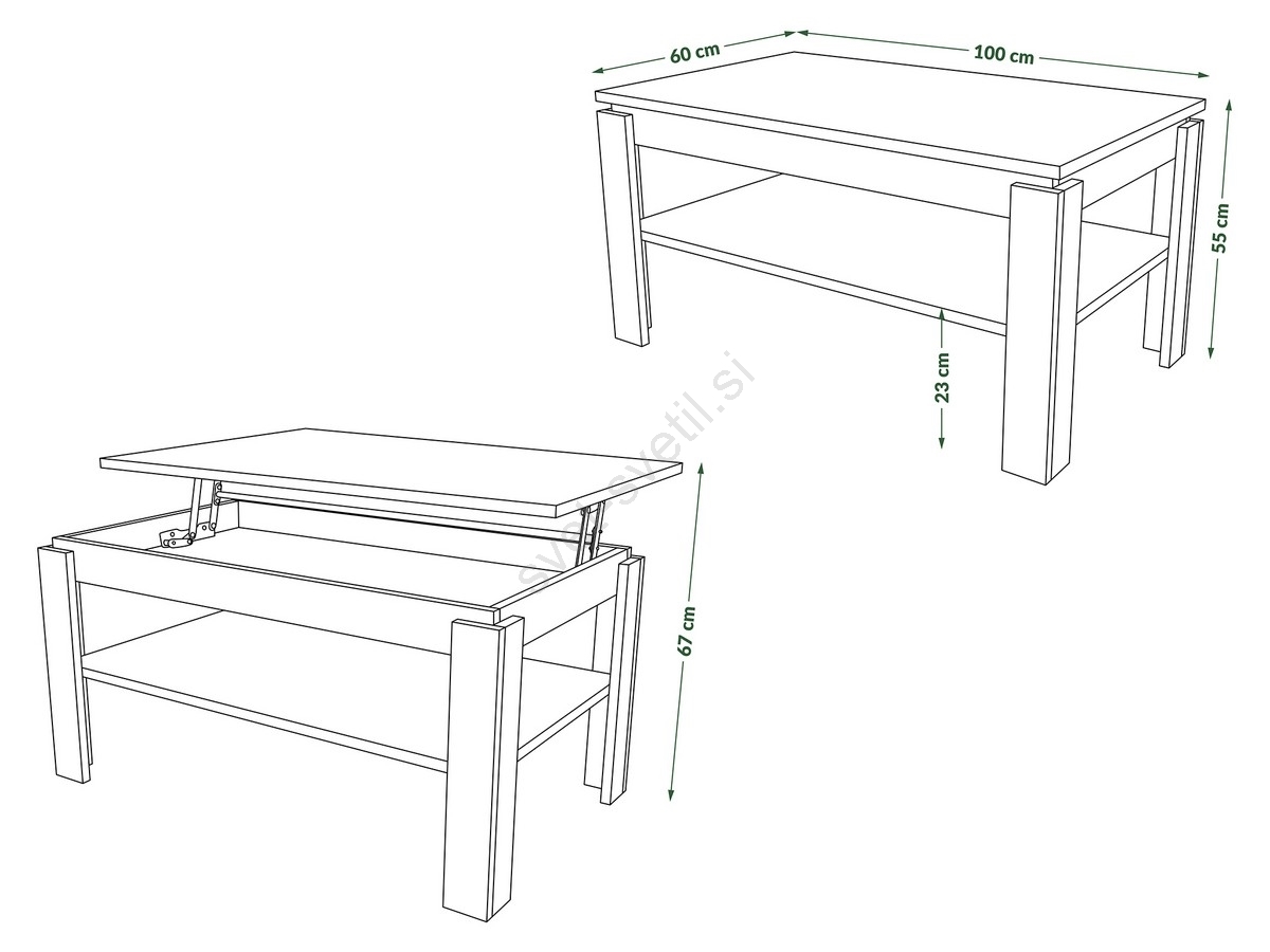 • Mizo je mogoče dvigniti do višine 67 cm.