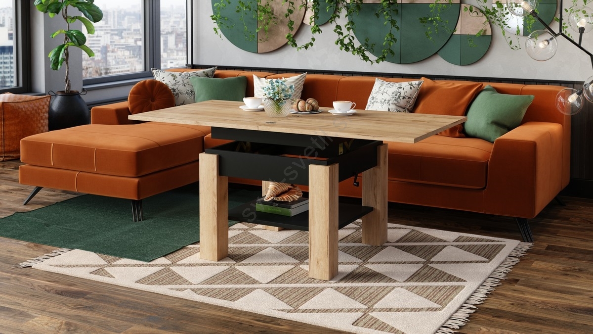 Raztegljiva klubska/jedilna miza z dvižno ploščo CALEB hrast craft/črna