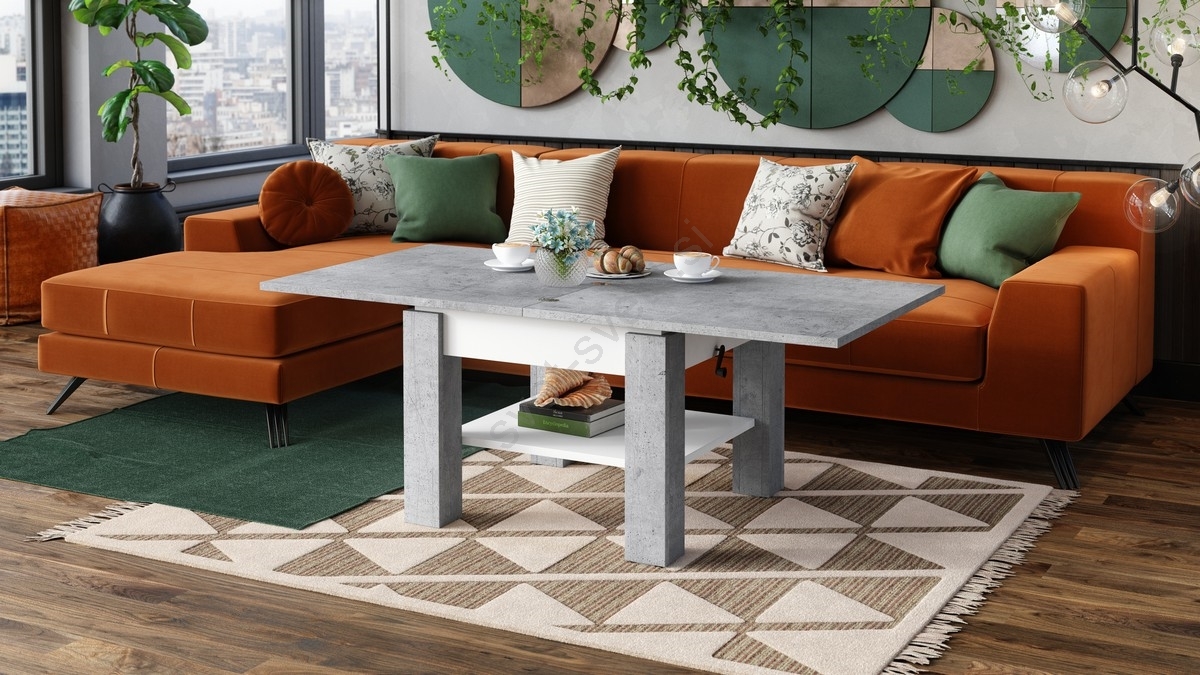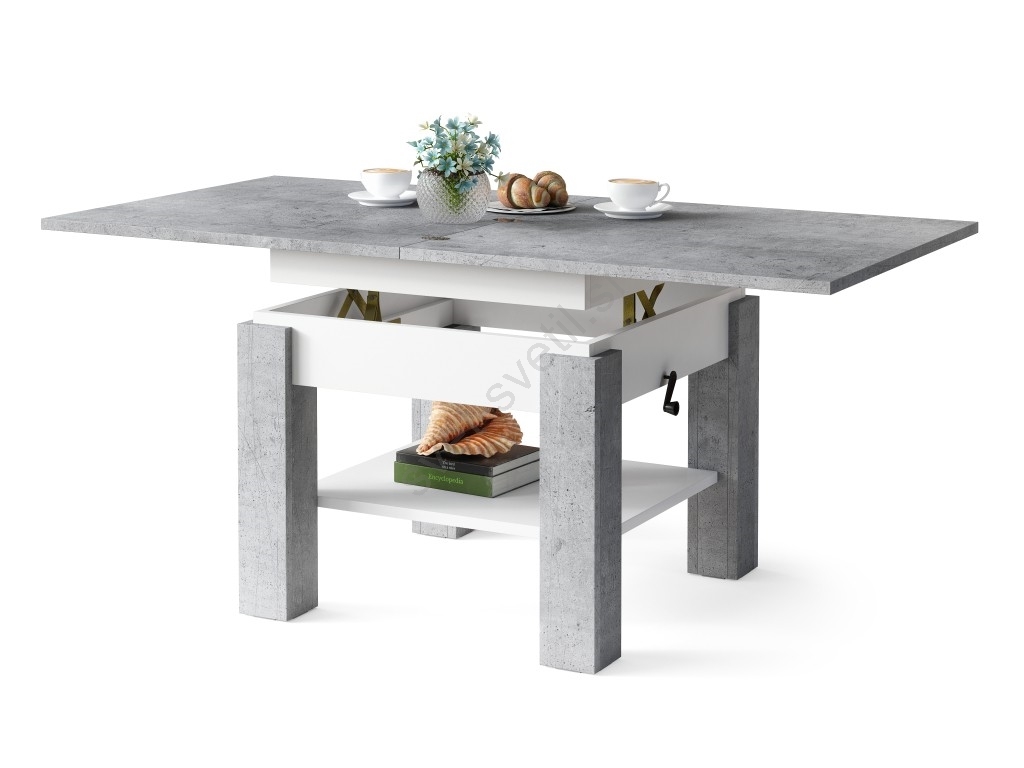 Raztegljiva klubska/jedilna miza z dvižno ploščo CALEB, v betonsko sivi/beli barvi