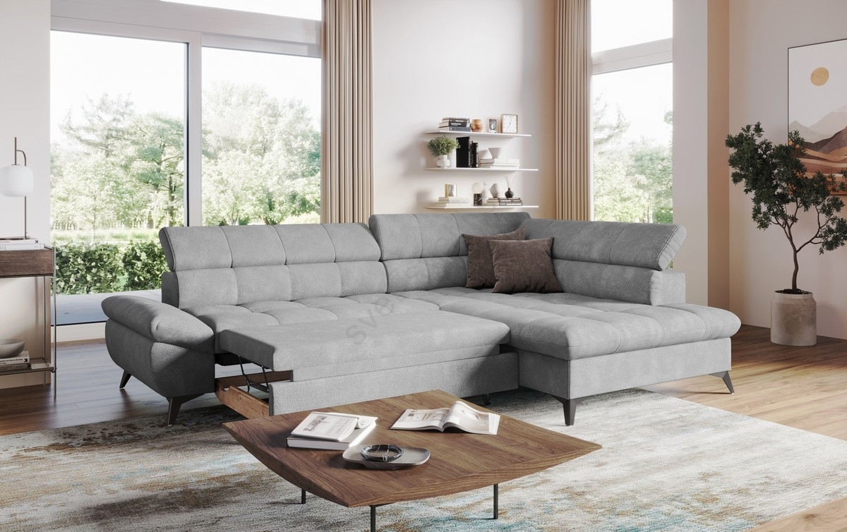 • Raztegljiv kotni sedežni garnitura v obliki črke L MARANO desna siva