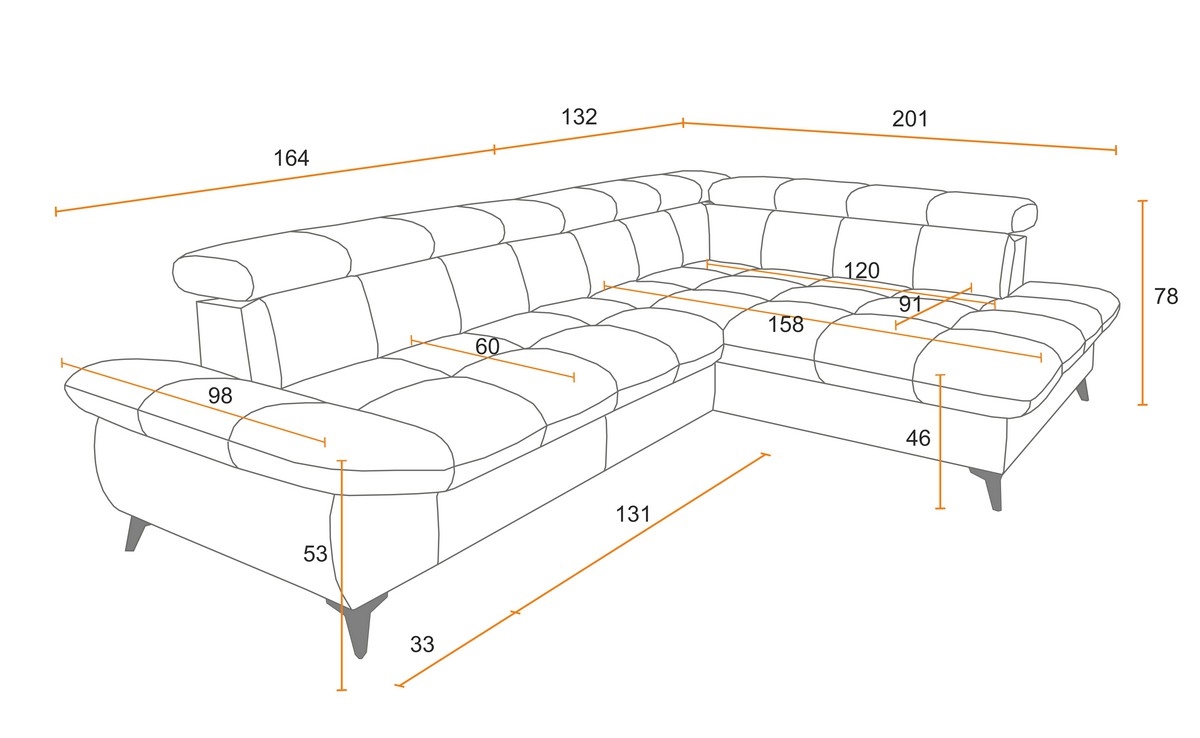 • Raztegljiv kotni sedežni garnitura v obliki črke L MARANO, leva, oranžna