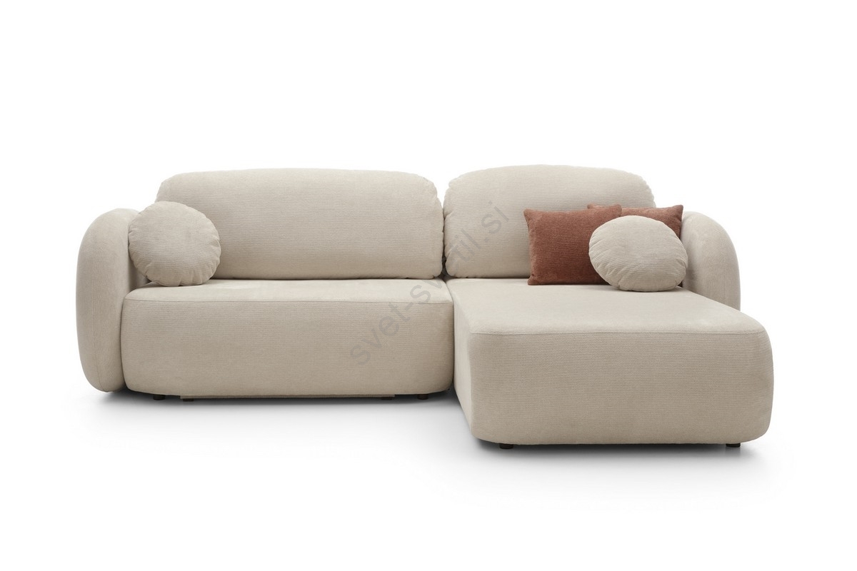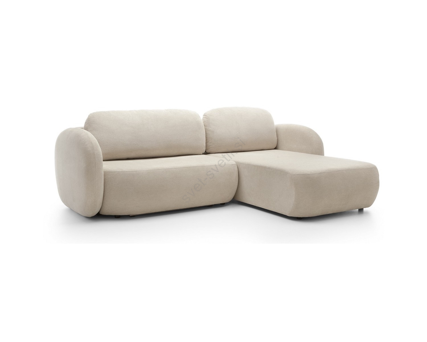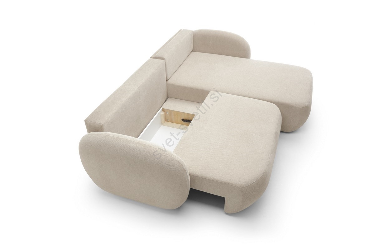 • Kotna raztegljiva sedežna garnitura OLBIA, desna, bež, z odlagalnim prostorom v L-obliki