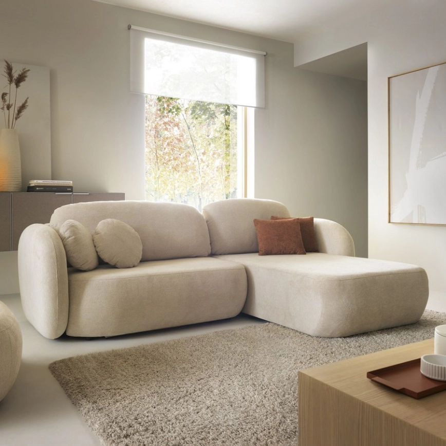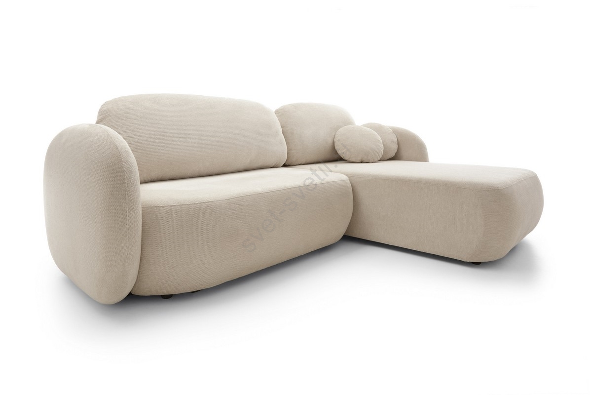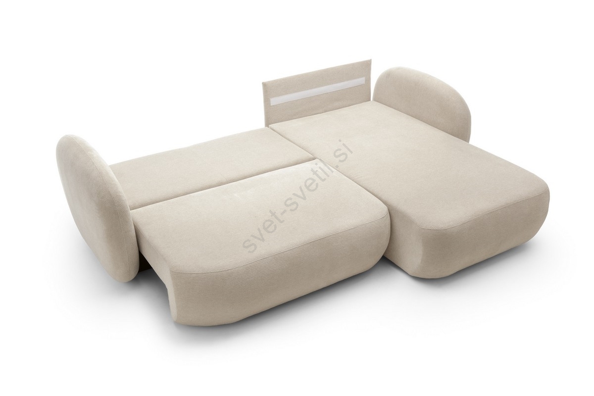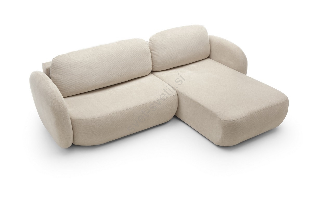 • Kotna raztegljiva sedežna garnitura OLBIA, desna, bež, z odlagalnim prostorom v L-obliki