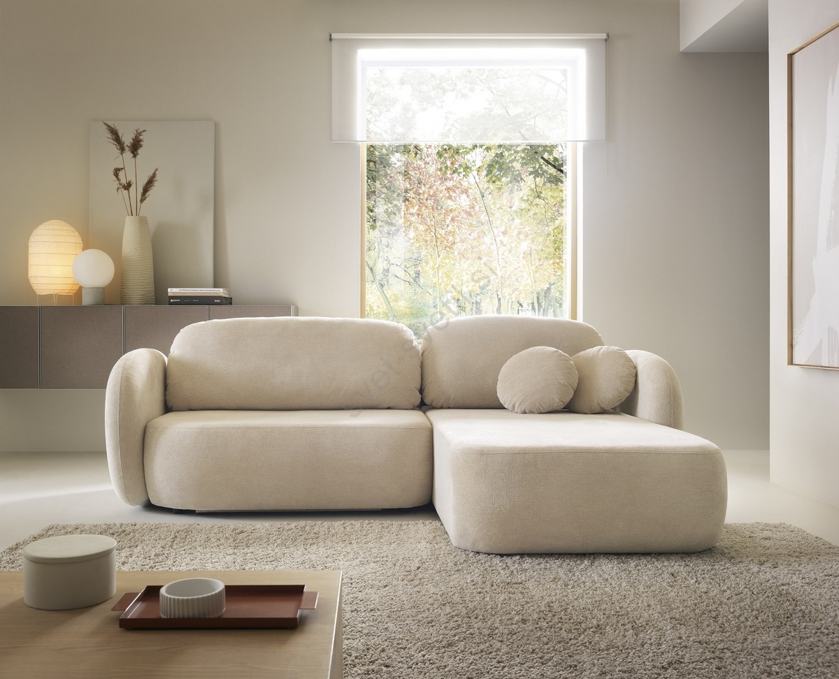 Kotna raztegljiva sedežna garnitura OLBIA, desna, bež, z odlagalnim prostorom v L-obliki