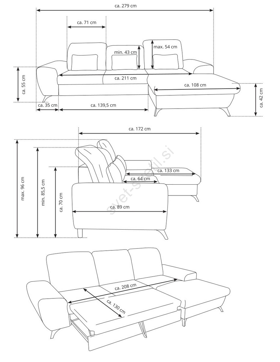 • Garnitura ima prostoren shranjevalni prostor za shranjevanje posteljnine in drugih sezonskih stvari.