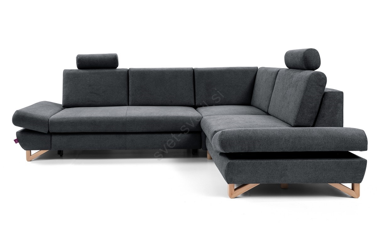 Raztegljiva desna kotna oblazinjena sedežna garnitura AVESTA v L-obliki s shranjevalnim prostorom, antracit