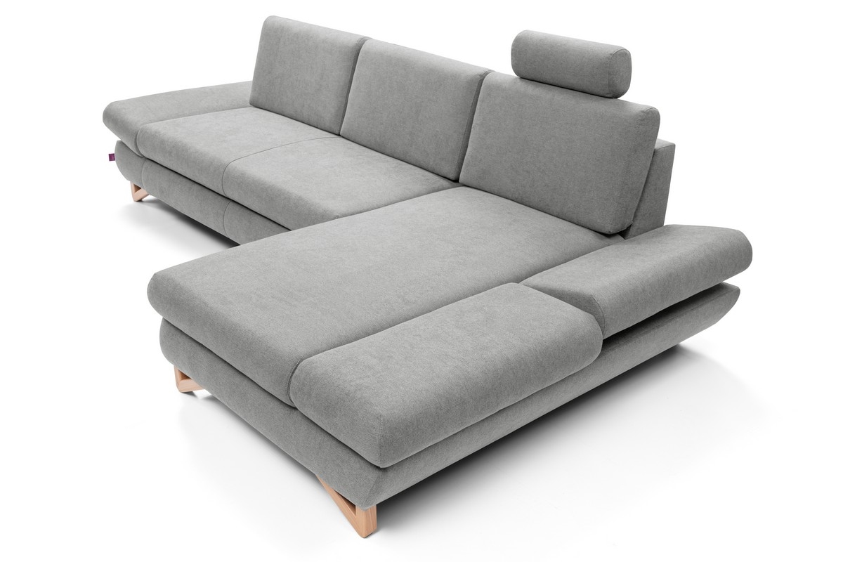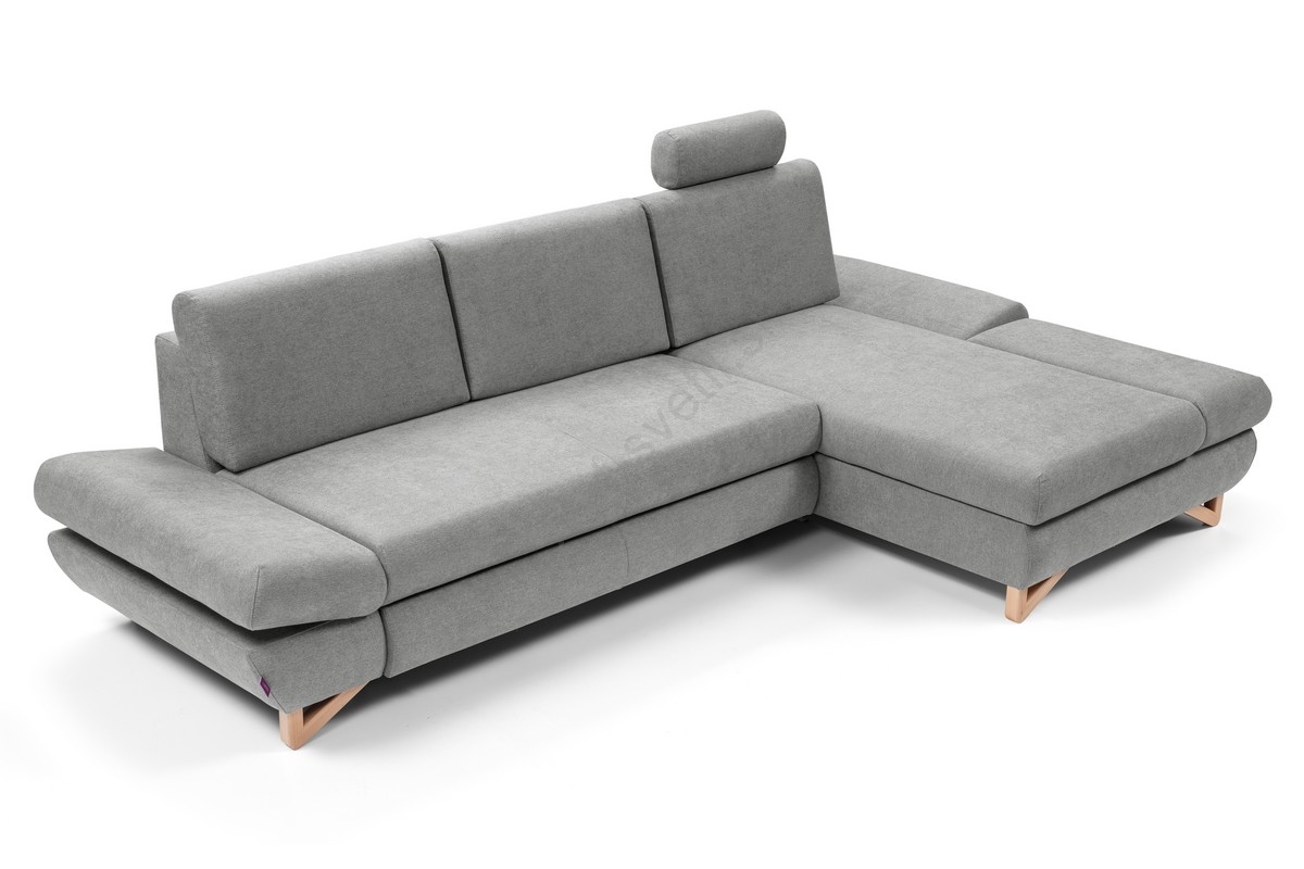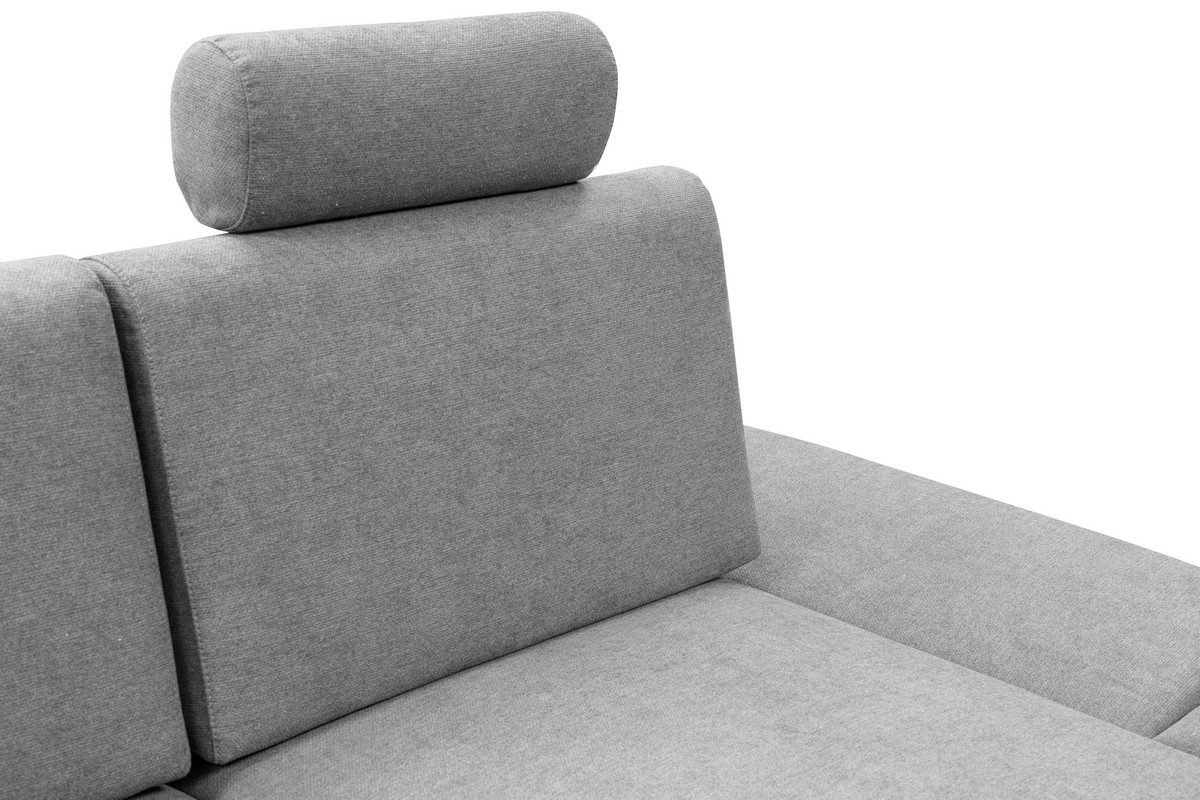 Raztegljiva kotna oblazinjena sedežna garnitura v L-obliki AVESTA, desna, s predalom za shranjevanje, siva