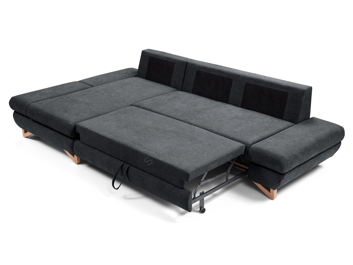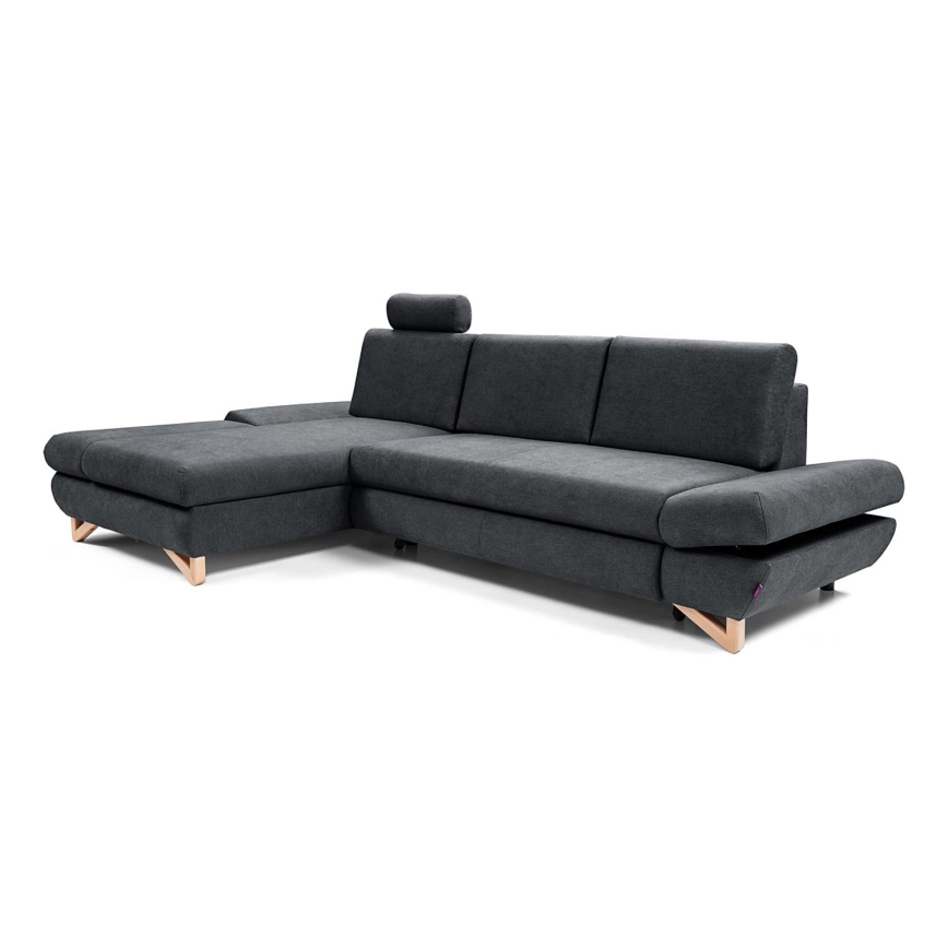Raztegljiva kotna oblazinjena sedežna garnitura AVESTA v obliki L, leva, z odlagalnim prostorom, antracit