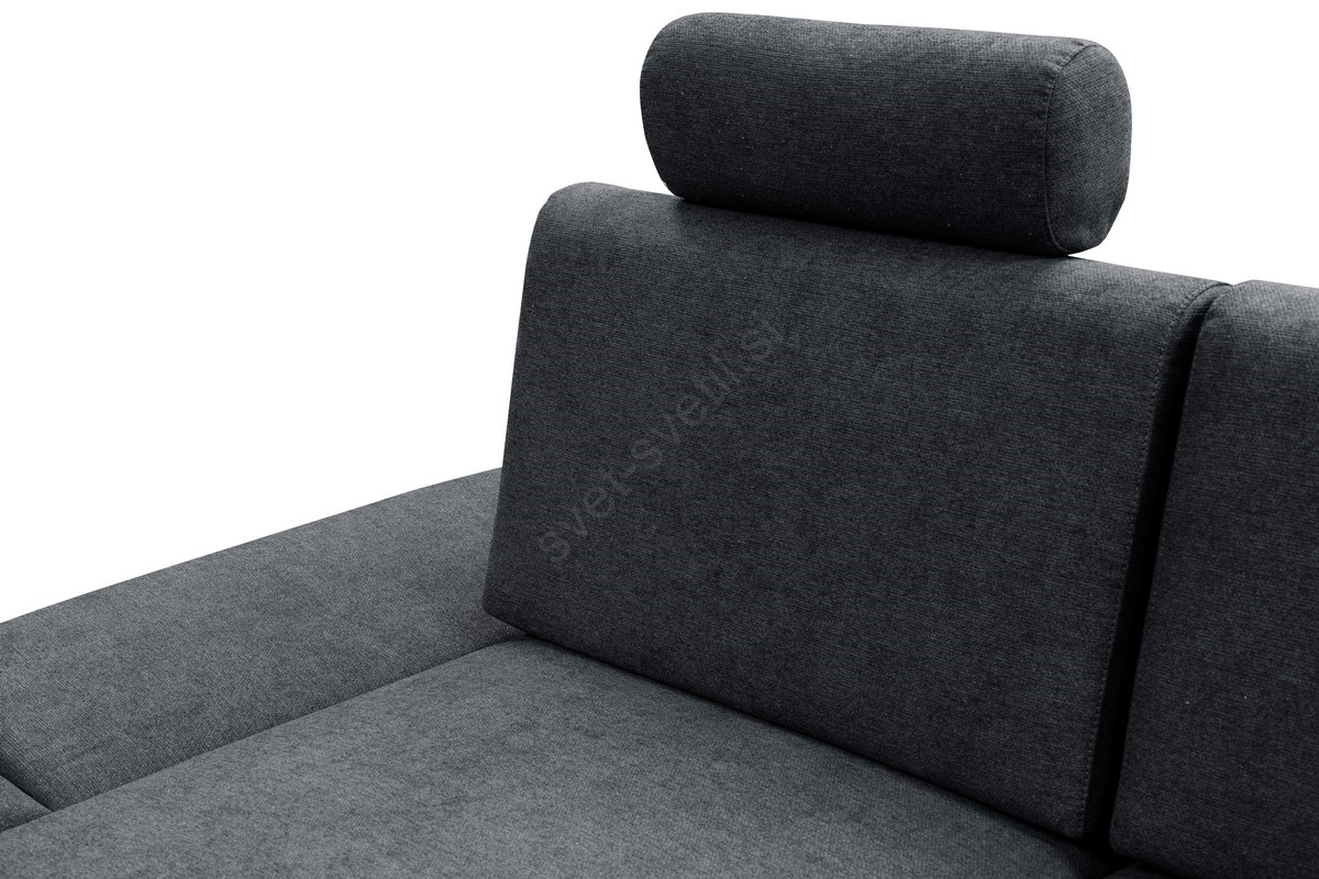 • Raztegljiva kotna oblazinjena sedežna garnitura AVESTA v obliki L, leva, z odlagalnim prostorom, antracit
