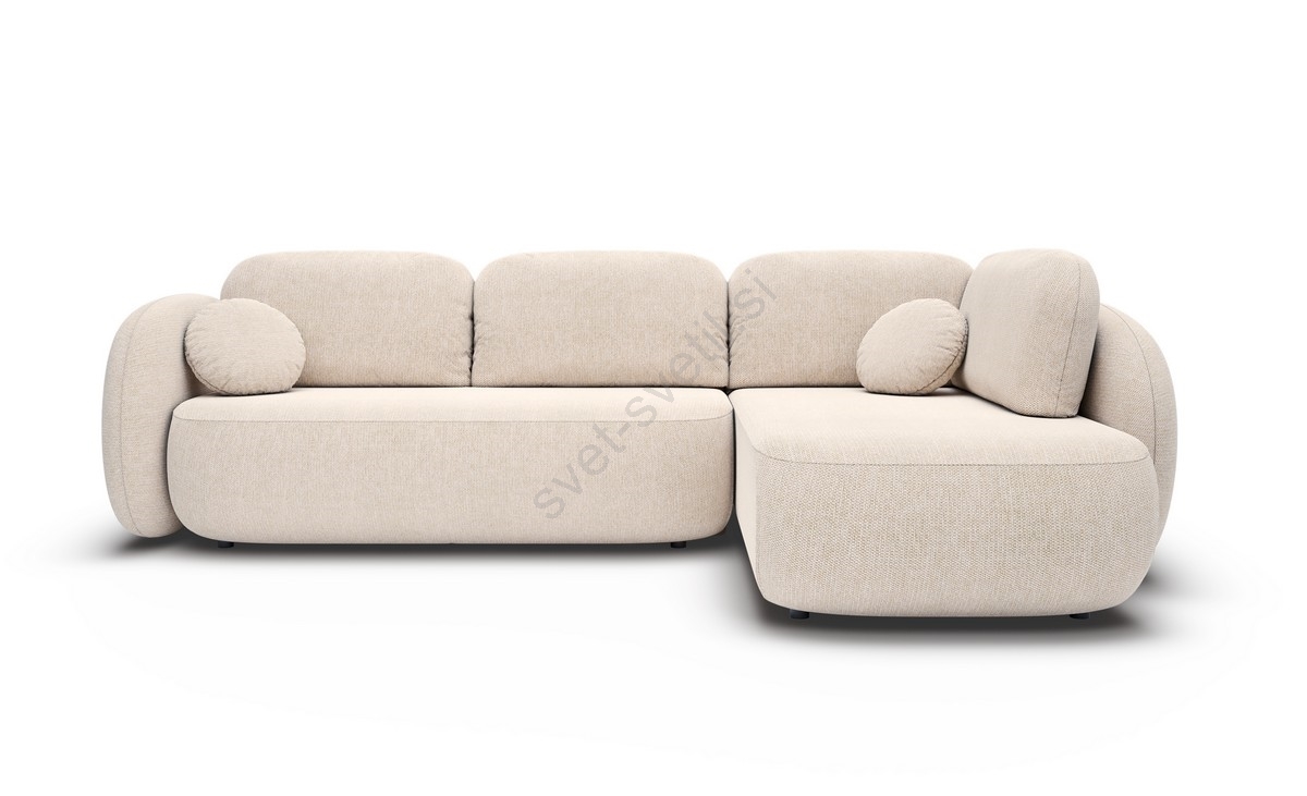 • Moderna raztegljiva kotna sedežna garnitura OLBIA (desni kot) je idealna izbira za vsakogar, ki išče kombinacijo sloga, udobja in praktičnosti.