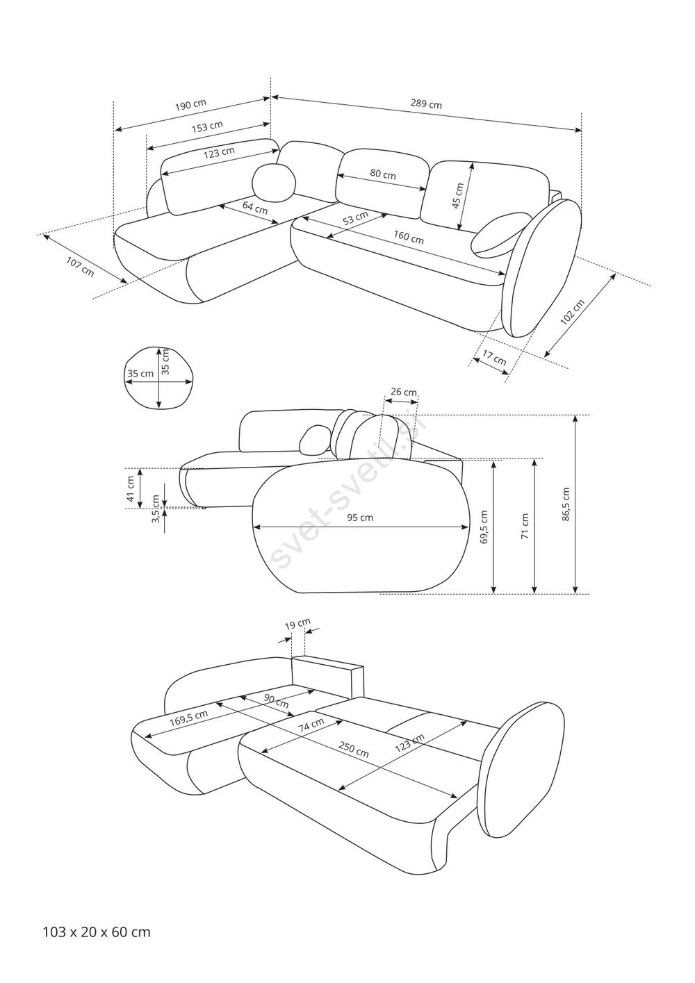• Sedežna garnitura ima prostoren shranjevalni prostor za shranjevanje posteljnine in drugih sezonskih predmetov.