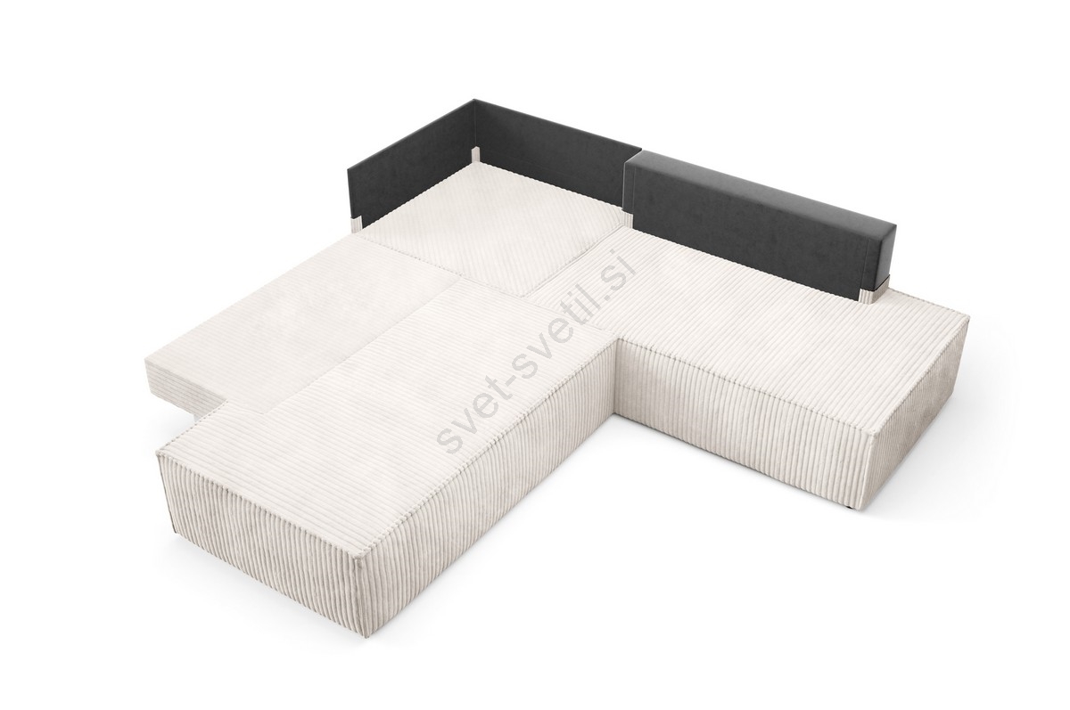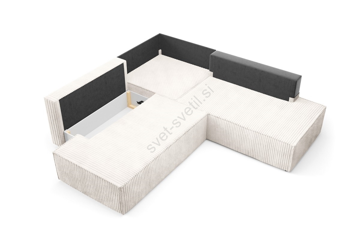 • Sodobna raztegljiva kotna sedežna garnitura TERAMO (desni kot) je idealna izbira za vsakogar, ki išče kombinacijo sloga, udobja in praktičnosti.