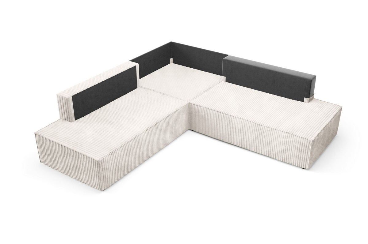 Raztegljiva kotna sedežna garnitura TERAMO v L-obliki, desna, bež, s shranjevalnim prostorom