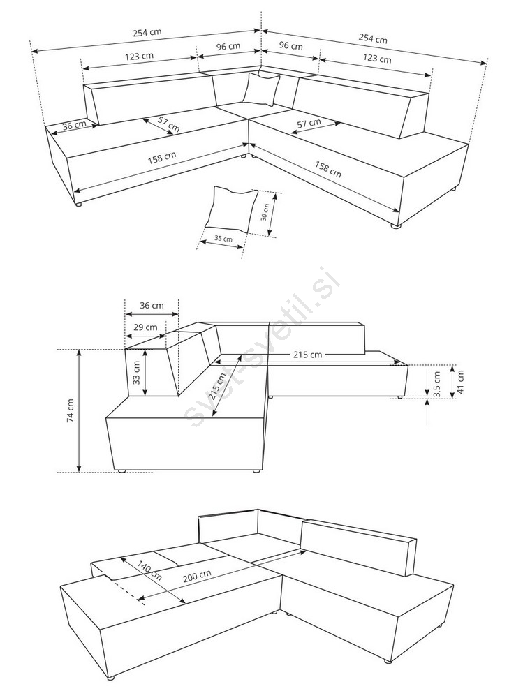 • Sedežna garnitura ima prostoren shranjevalni predal za shranjevanje posteljnine in drugih sezonskih predmetov.