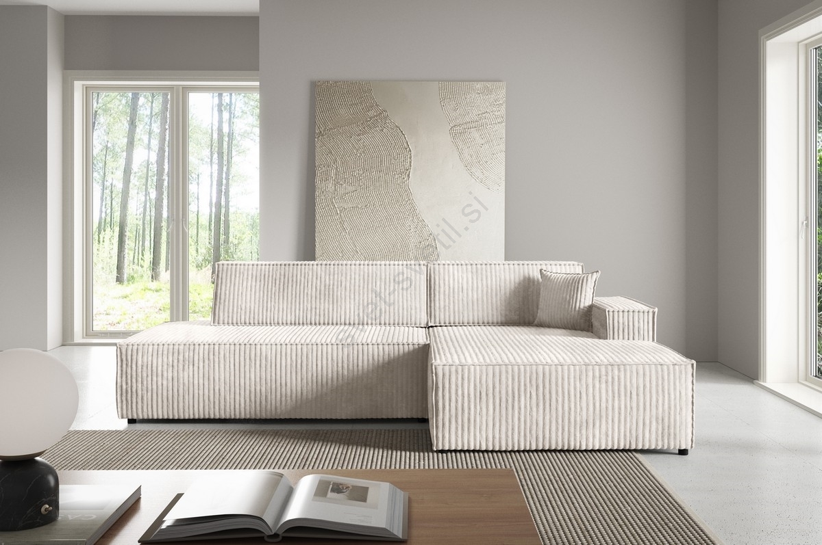 Raztegljiva kotna sedežna garnitura TERAMO v obliki črke L z odlagalnim prostorom, desna, bež