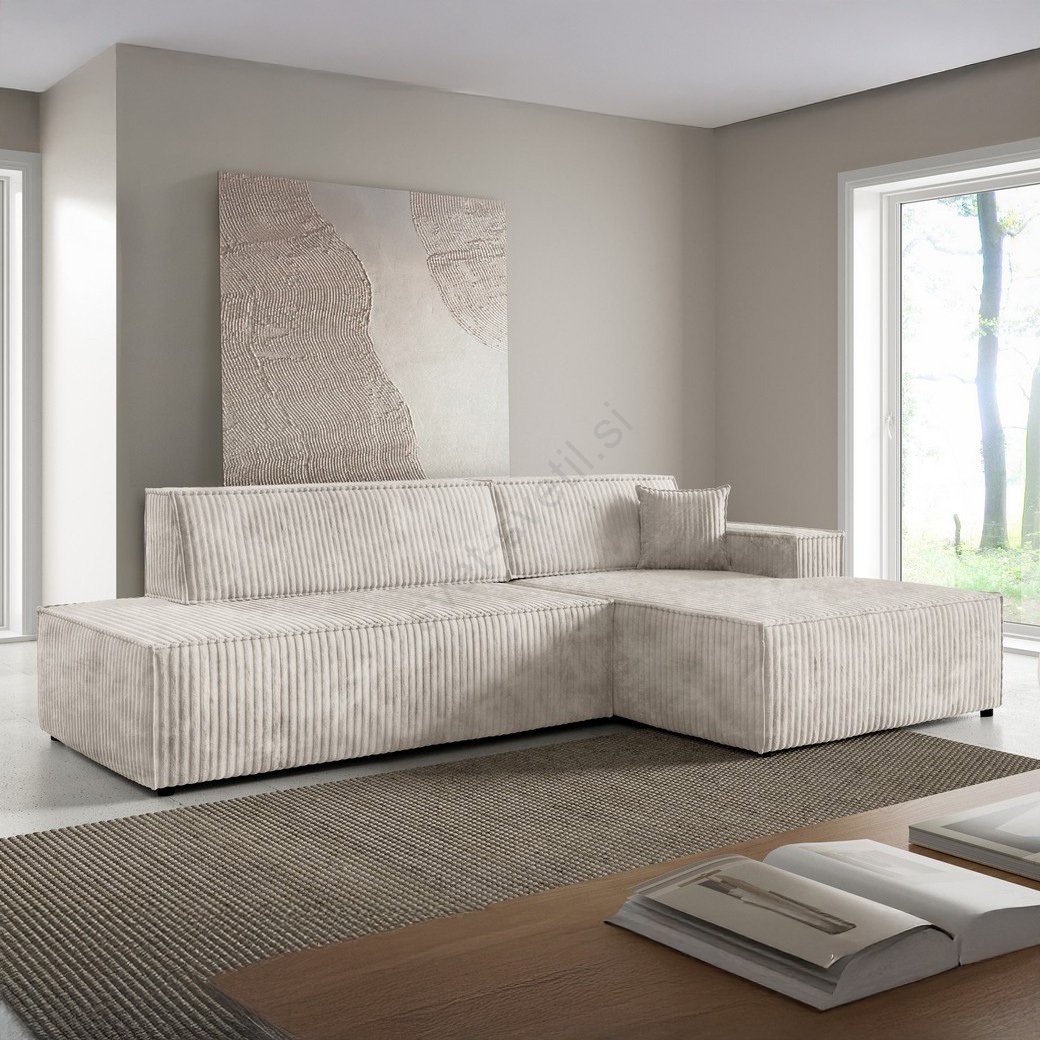 Raztegljiva kotna sedežna garnitura z odlagalnim prostorom v obliki L TERAMO, desna, bež