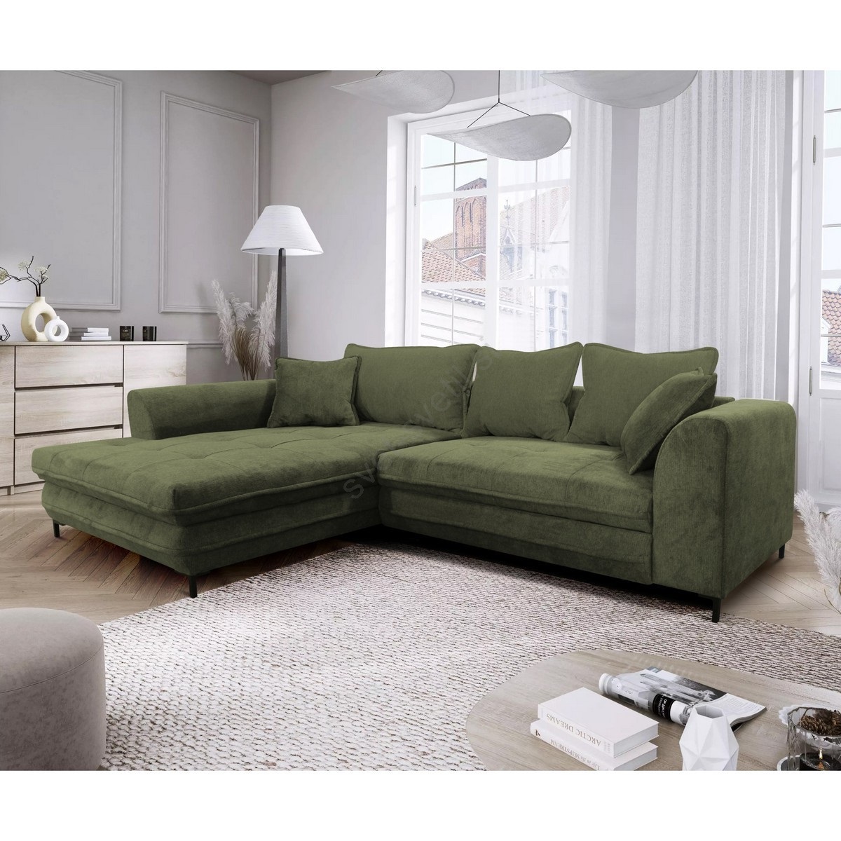 • Raztegljiva kotna sedežna garnitura LAGOA v obliki črke L z odlagalnim prostorom, leva, zelena