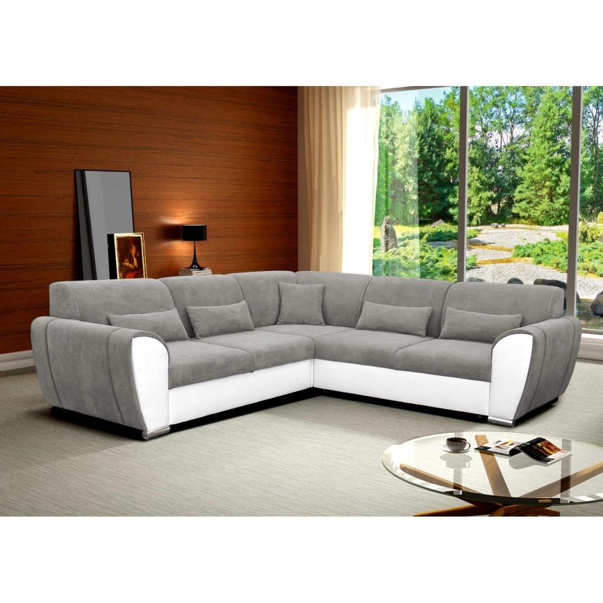 Raztegljiva desna kotna sedežna garnitura z prostorom za shranjevanje v obliki črke L VISEU, siva/bela