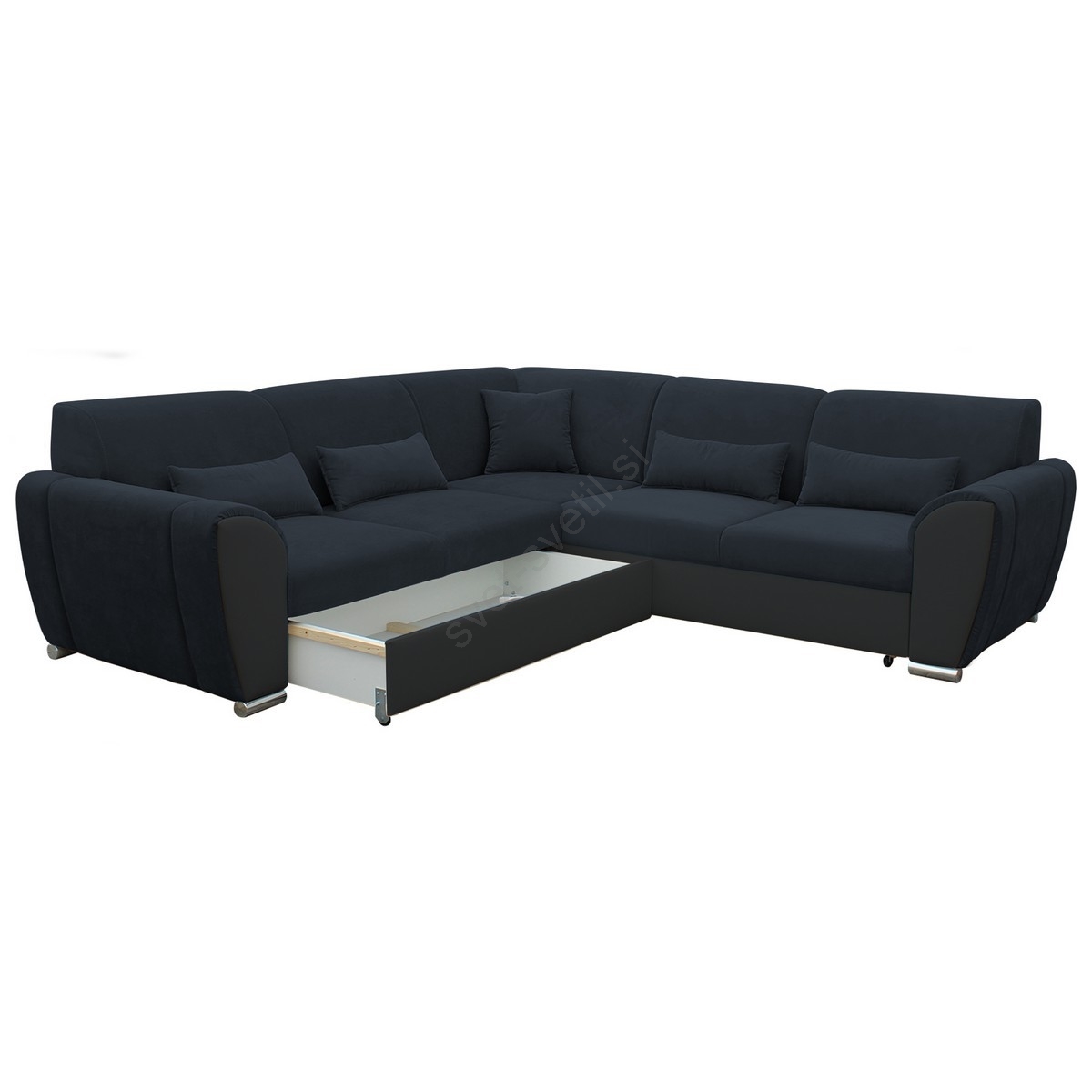 • Raztegljiva kotna sedežna garnitura z odlagalnim prostorom v obliki črke L VISEU, desna, antracit/črna