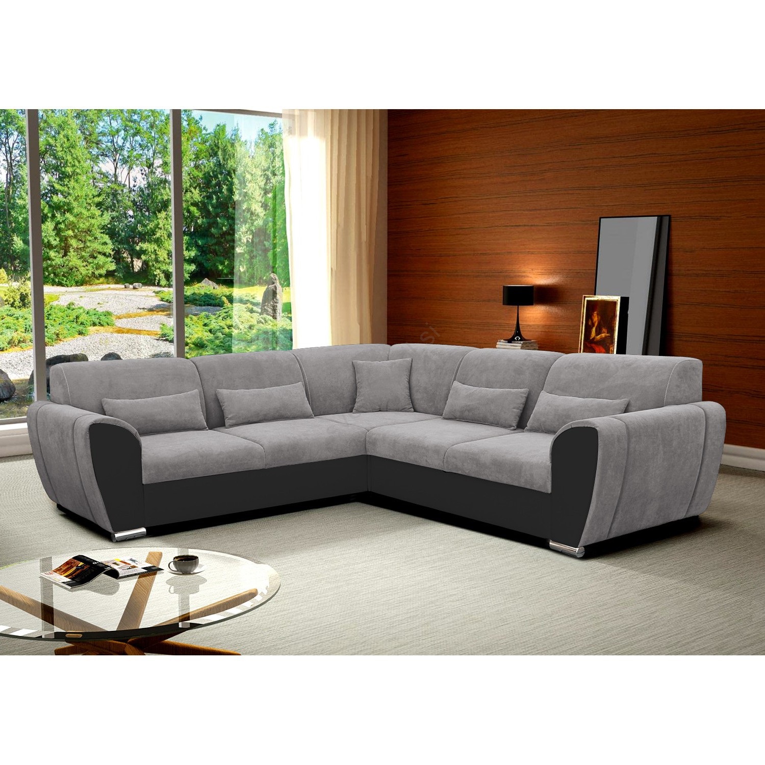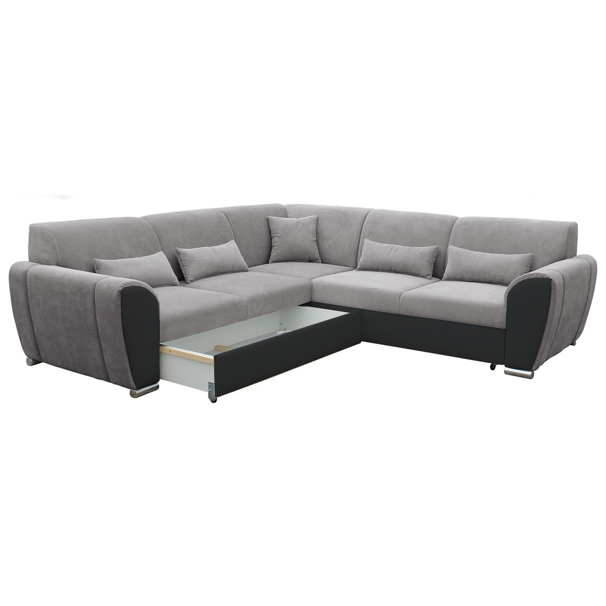 Raztegljiva kotna sedežna garnitura VISEU v L-obliki, leva, siva/črna, s prostorom za shranjevanje