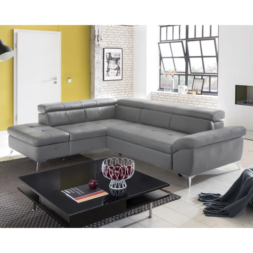 Raztegljiv usnjeni kotni sedežni garnitura v obliki črke L SALERNO II, desna, siva