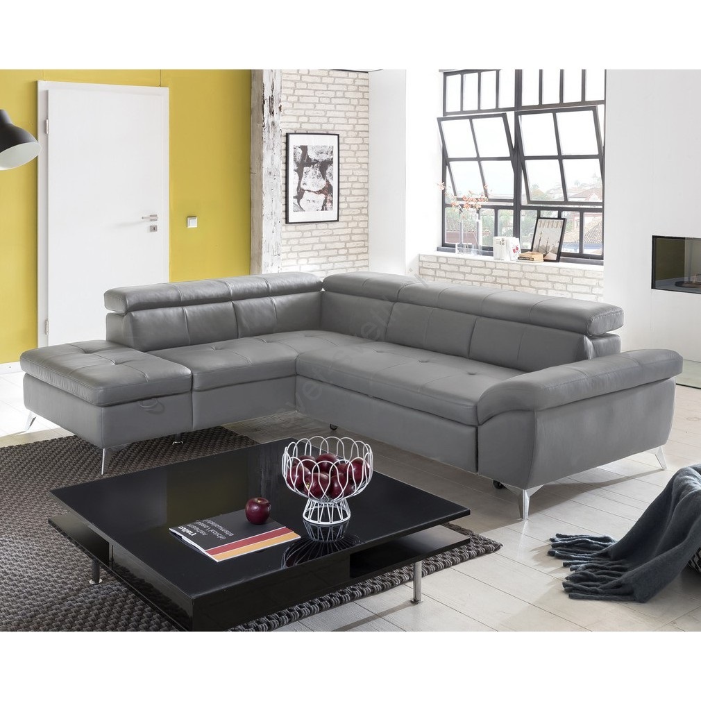 • Raztegljiv usnjeni kotni sedežni garnitura v obliki črke L SALERNO II, leva, siva