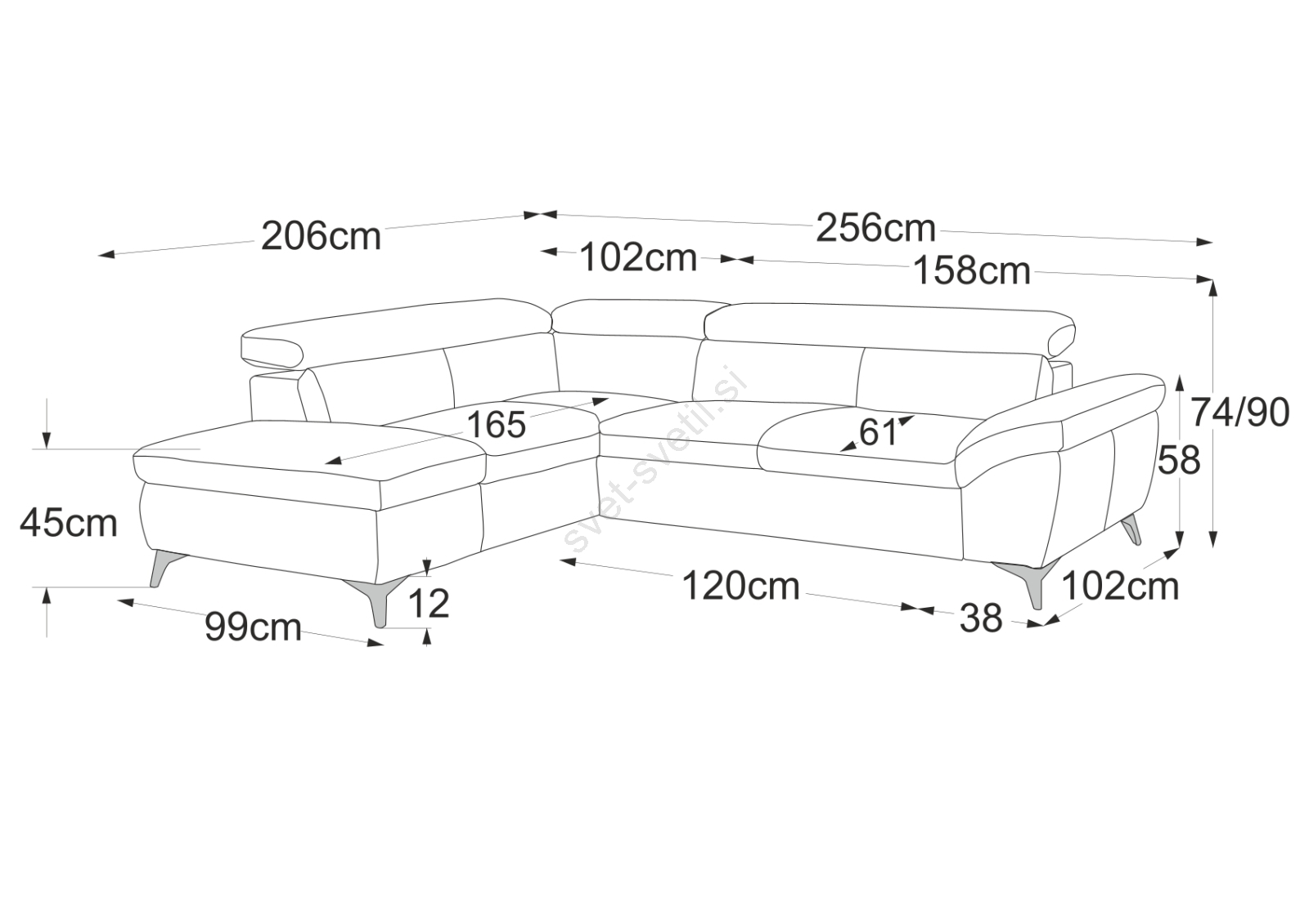 • 12 cm visoke kovinske noge dodajo sodoben videz in zagotavljajo stabilnost.